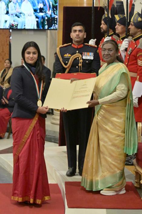 honoured with her Major Dhyan Chand Khel Ratna Award by President Droupadi